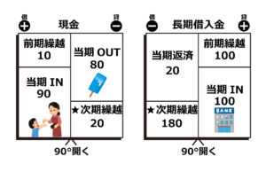 (違い棚の説明が、左がプラス右がマイナスの現金勘定しかないのでわかりにくいかも知れません)